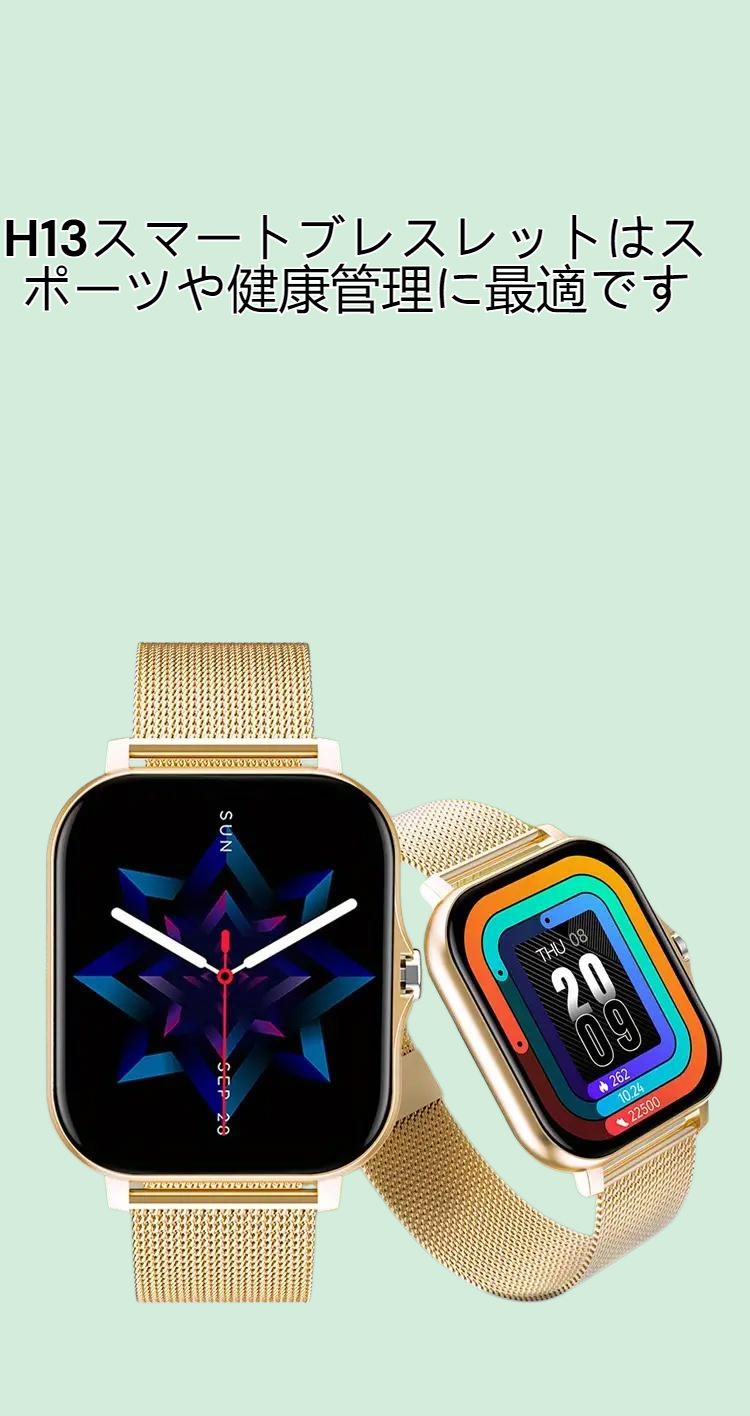 1.83インチ大画面、Bluetooth通話対応、心拍数測定、タッチスクリーン搭載のスマートウォッチ。スポーツや健康管理に最適、H13スマートブレスレット。